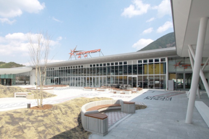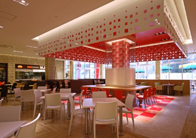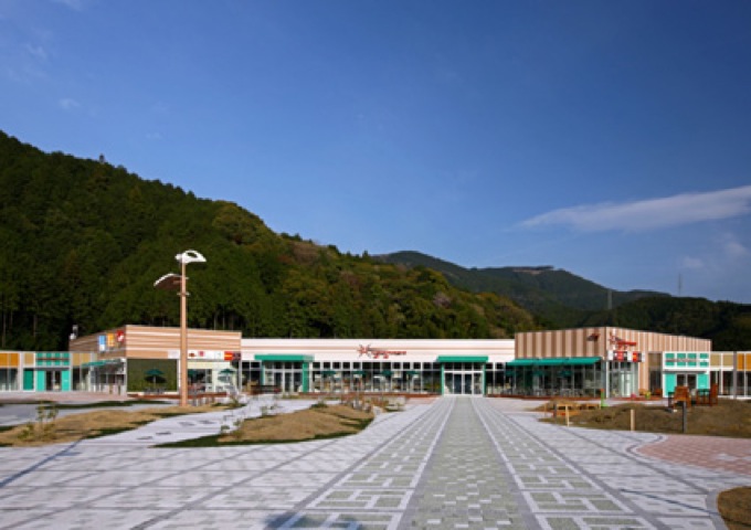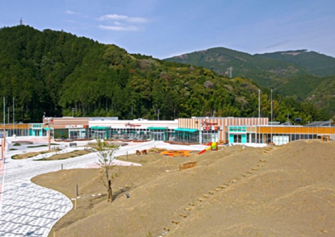 新東名静岡SAは上りは静岡のお茶から緑色下りは花の赤色をイメージした外観の施設としています。藤枝PAは山間にある敷地から山里の民家をイメージした施設としました。
