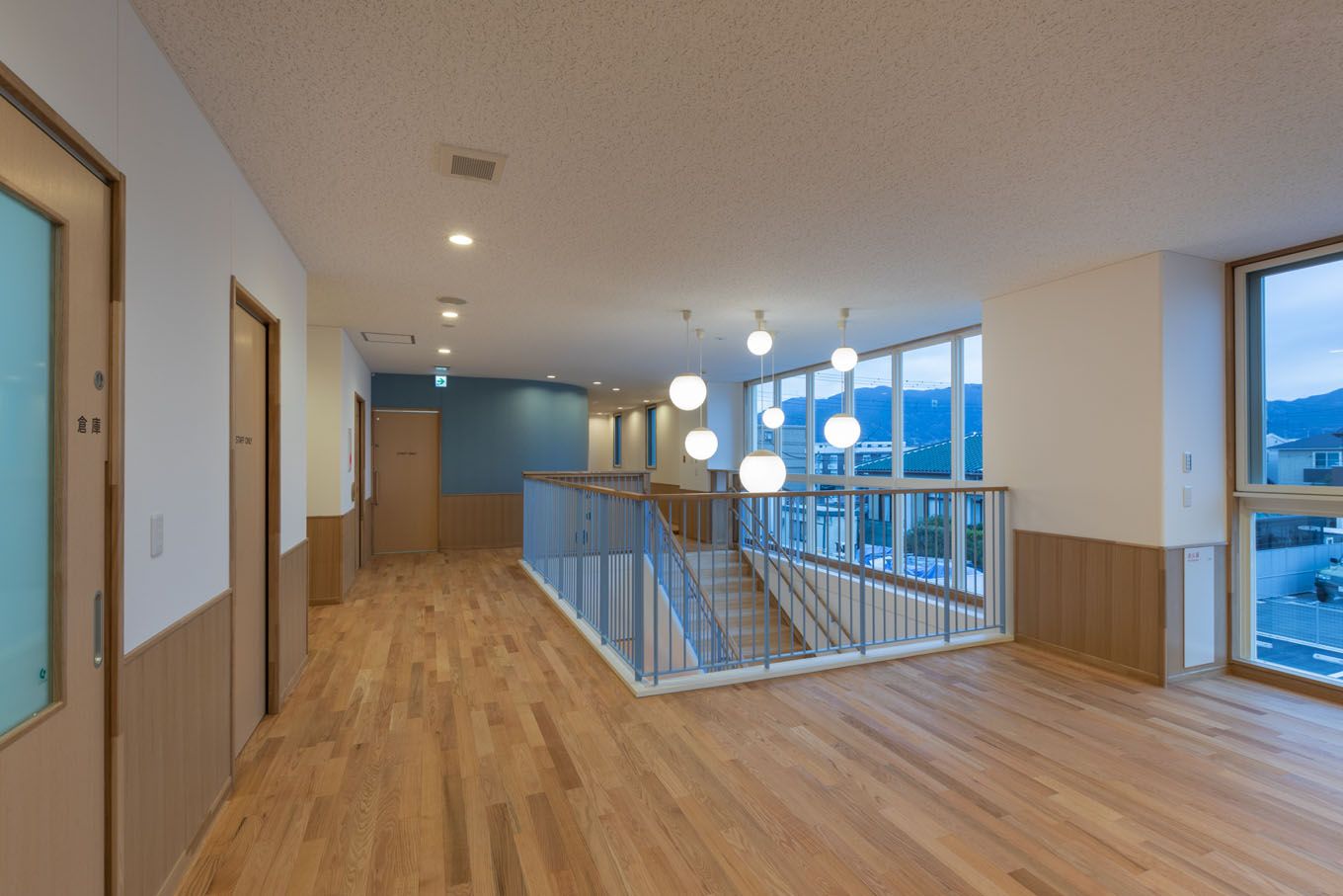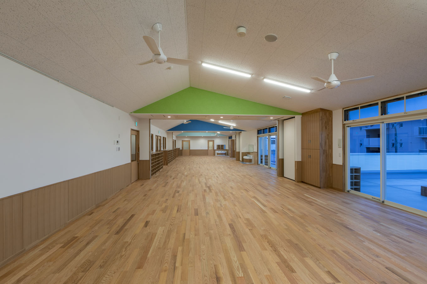 富士市内で70年以上にわたり、幼児教育を担ってきた学校法人による幼保連携型認定こども園の新設計画。 敷地南側に設けた園庭を囲うようにコの字型に園舎を配置し、建物内外から園児たちと先生方がお互いの様子を感じられる計画としている。法人が運営する他のこども園と同様に、赤い屋根と白い壁でデザインされた南欧風の外観と、自然光が取り込まれた園舎で、明るく楽しく、ときめきいっぱいのこども園となっている。 (担当:鈴木・川口)